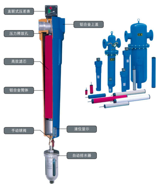 性能特點.流通路徑擴大,以減少降壓。.外殼采用優(yōu)質(zhì)鋁合金和碳鋼材料。.外表噴涂環(huán)氧樹脂粉末以提高耐用性和抗腐蝕性。.進出口采用螺紋接口型,并在殼體山標注了空氣的流向···
